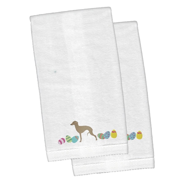 Italian Greyhound Easter White Embroidered Plush Hand Towel, 2PK