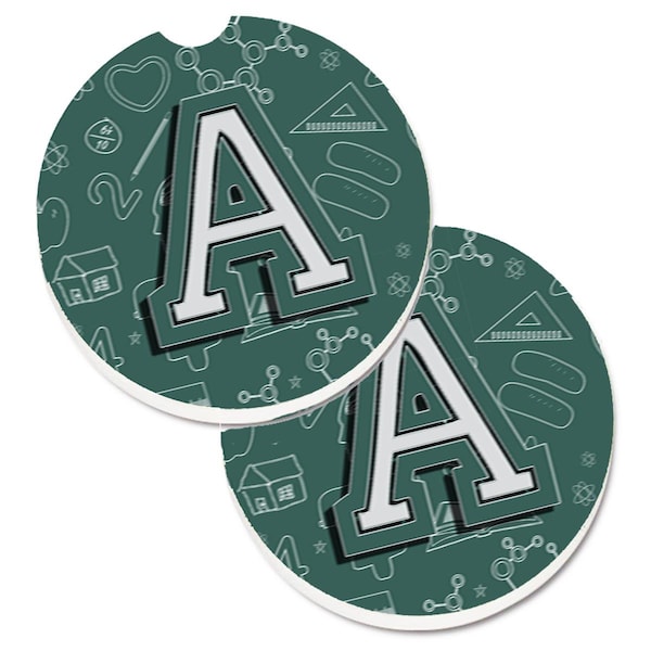 Letter A Back to School Initial Set of 2 Cup Holder Car Coaster