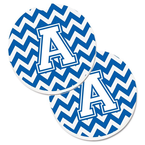 Letter A Chevron Blue and White Cup Holder Car Coaster, PK2