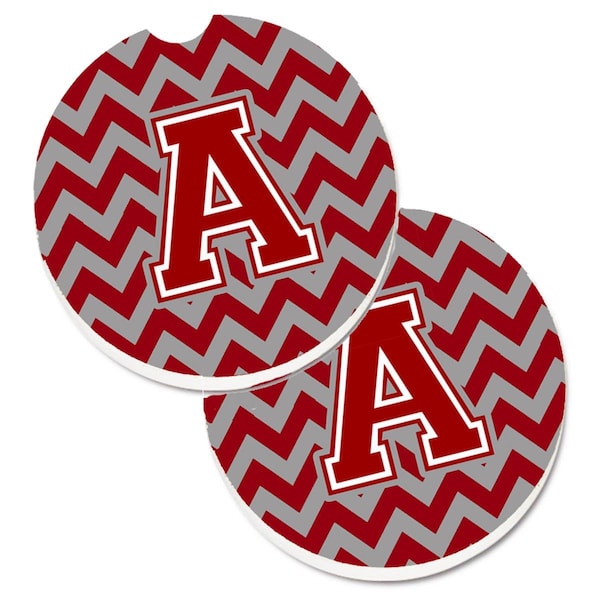 Letter A Chevron Maroon and White Cup Holder Car Coaster, PK2