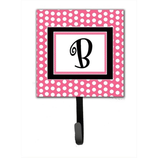Letter B Initial Monogram - Pink Black Polka Dots Leash Holder Or Key Hook