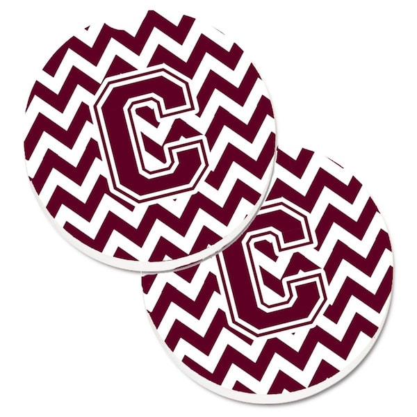 Letter C Chevron Maroon and White Cup Holder Car Coaster, PK2