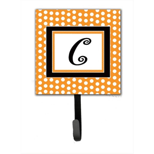Letter C Initial Monogram - Orange Polka Dots Leash Holder Or Key Hook