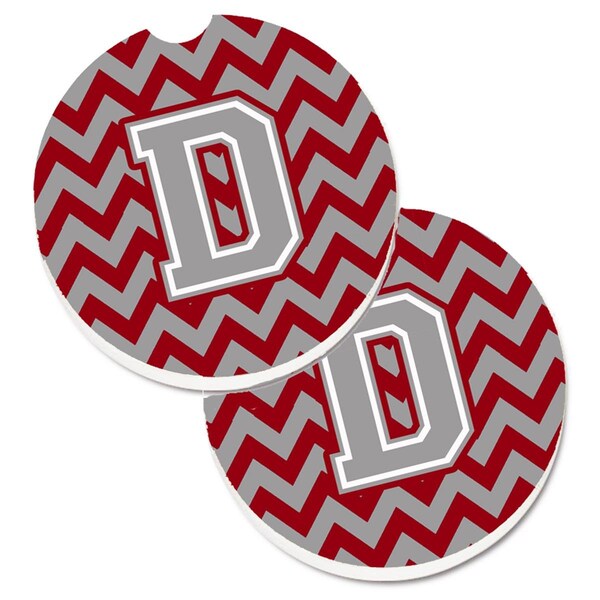 Letter D Chevron Crimson and Grey Cup Holder Car Coaster, PK2