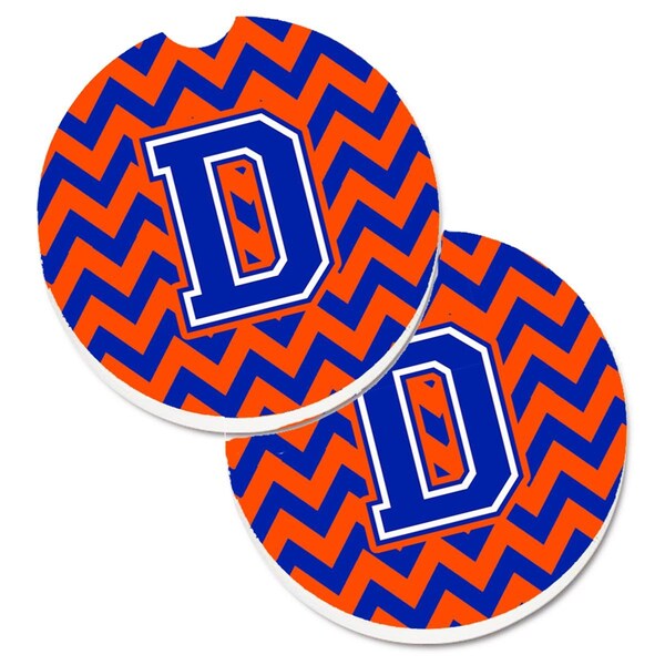 Letter D Chevron Orange and Blue Cup Holder Car Coaster, PK2