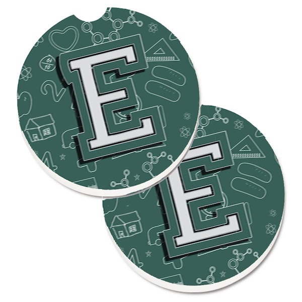 Letter E Back to School Initial Set of 2 Cup Holder Car Coaster