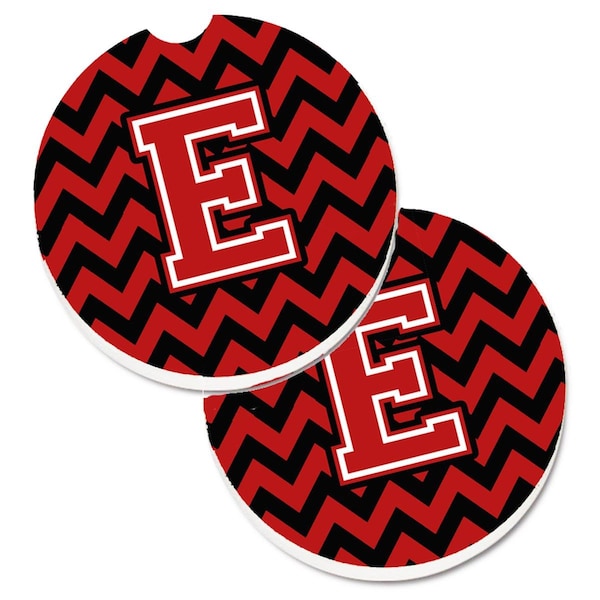 Letter E Chevron Black and Red Set of 2 Cup Holder Car Coaster