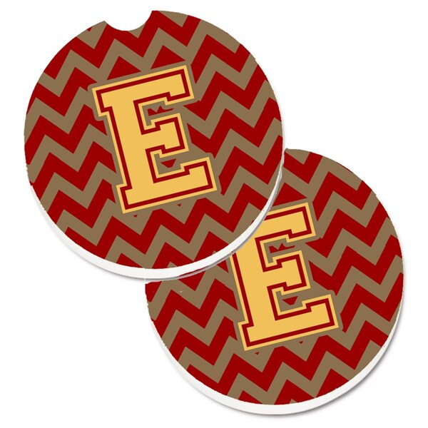 Letter E Chevron Garnet and Gold Cup Holder Car Coaster, PK2