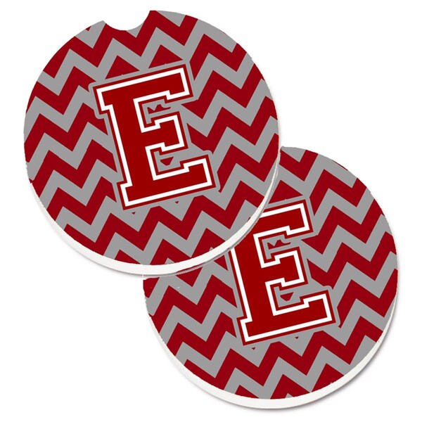 Letter E Chevron Maroon and White Cup Holder Car Coaster, PK2