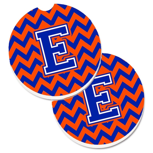 Letter E Chevron Orange and Blue Cup Holder Car Coaster, PK2