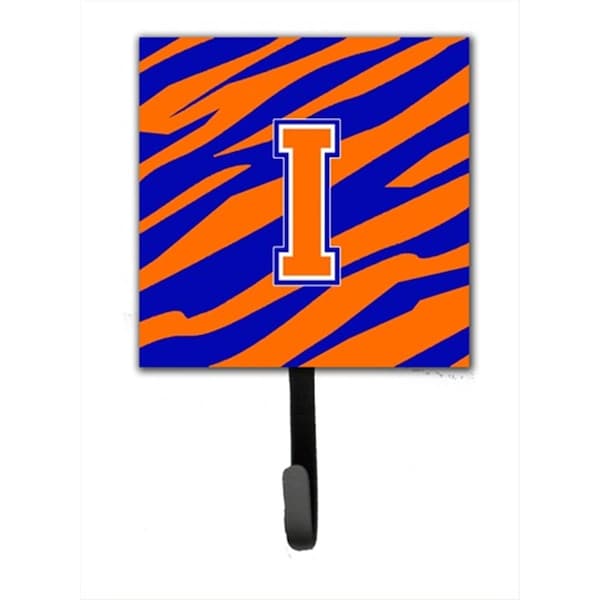 Letter I Initial Monogram - Tiger Stripe - Blue Orange Leash Holder Or Key Hook