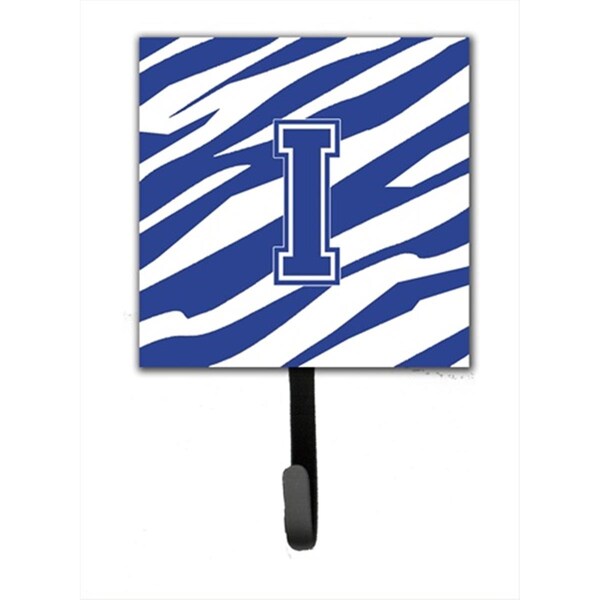 Letter I Initial Tiger Stripe Blue And White Leash Holder Or Key Hook