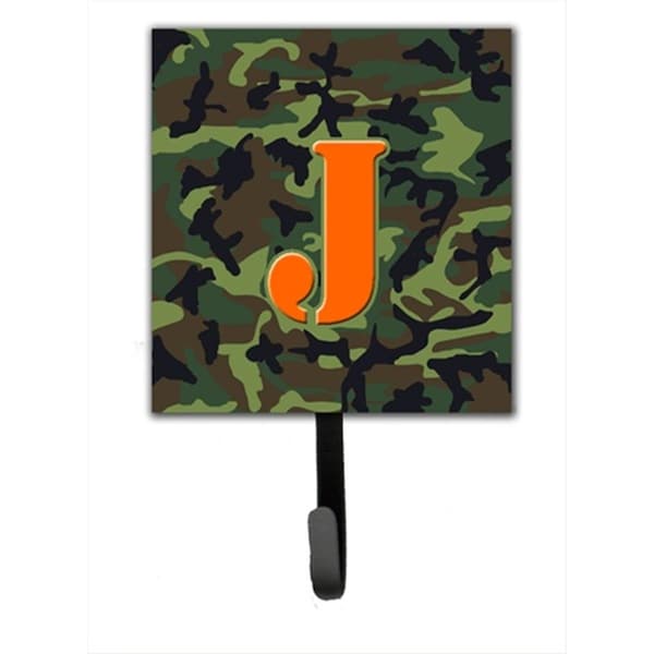 Letter J Initial Monogram - Camo Green Leash Holder Or Key Hook