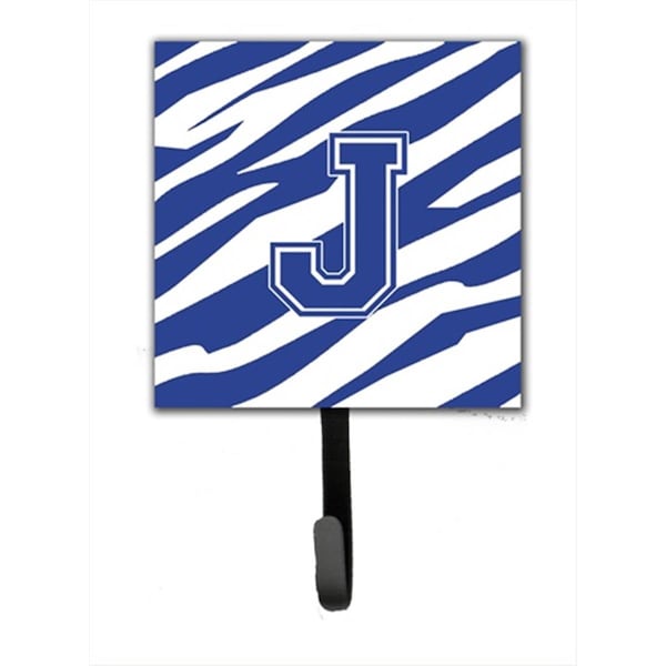 Letter J Initial Tiger Stripe Blue And White Leash Holder Or Key Hook