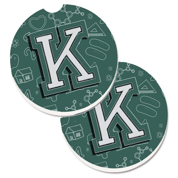 Letter K Back to School Initial Set of 2 Cup Holder Car Coaster