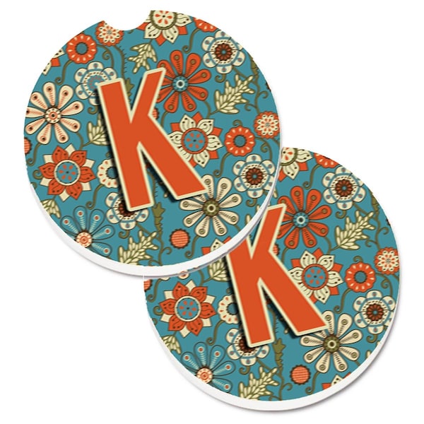 Letter K Flowers Retro Blue Cup Holder Car Coaster, PK2