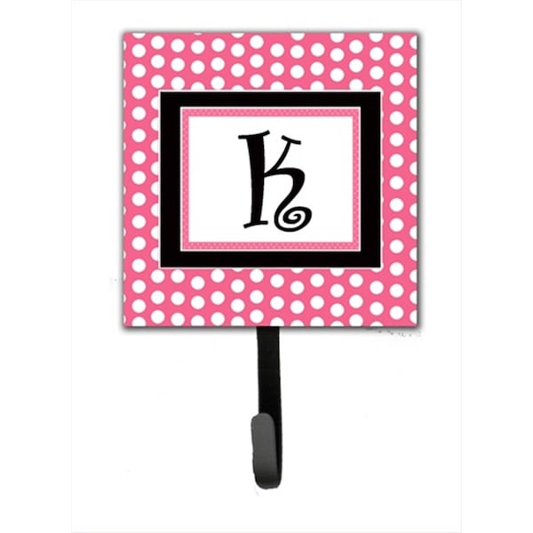 Letter K Initial Monogram - Pink Black Polka Dots Leash Holder Or Key Hook
