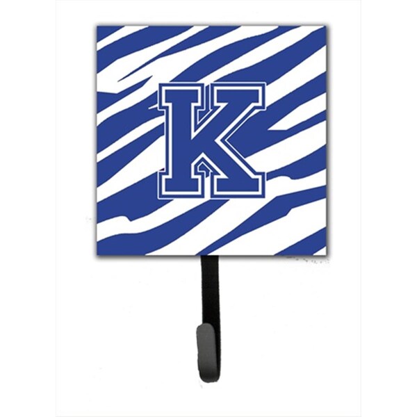Letter K Initial Tiger Stripe Blue And White Leash Holder Or Key Hook