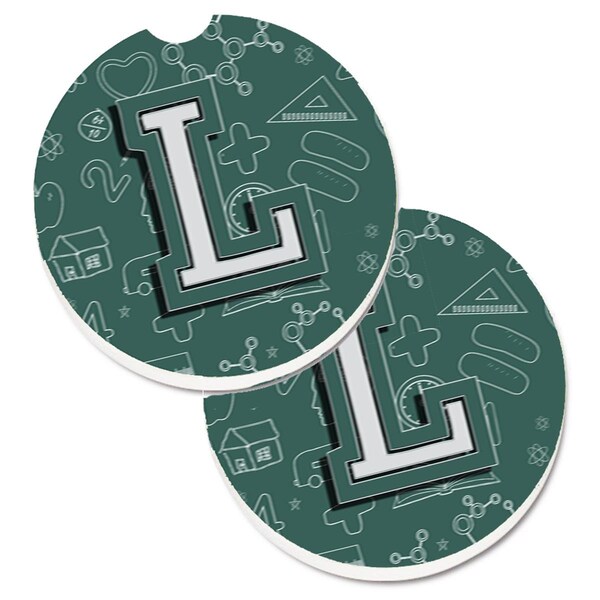 Letter L Back to School Initial Set of 2 Cup Holder Car Coaster