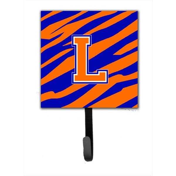 Letter L Initial Monogram - Tiger Stripe - Blue Orange Leash Holder Or Key Hook
