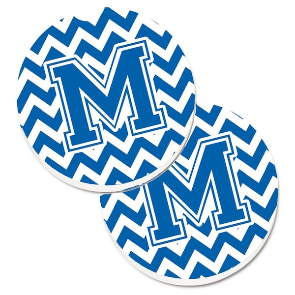 Letter M Chevron Blue and White Cup Holder Car Coaster, PK2