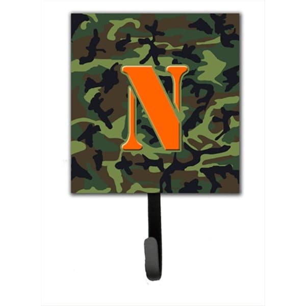 Letter N Initial Monogram - Camo Green Leash Holder Or Key Hook