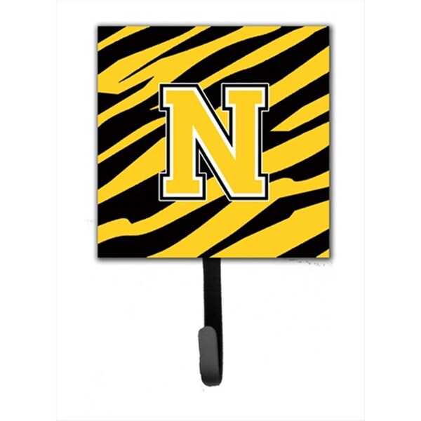 Letter N Initial Monogram - Tiger Stripe - Black Gold Leash Holder Or Key Hook