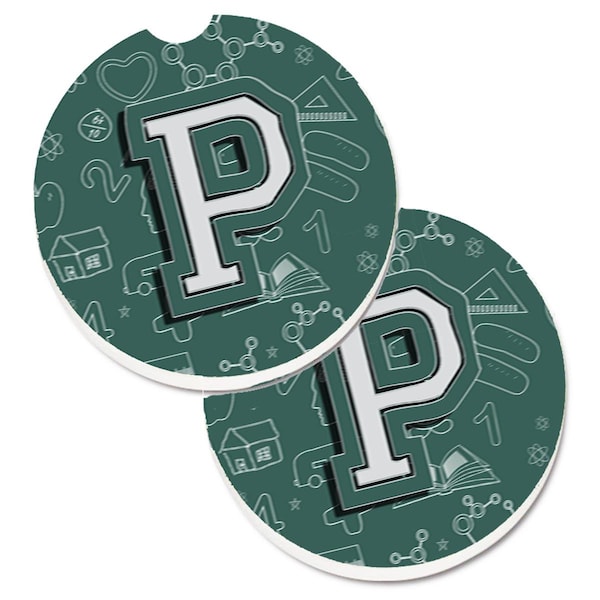 Letter P Back to School Initial Set of 2 Cup Holder Car Coaster