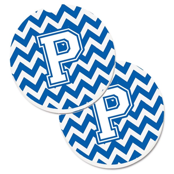 Letter P Chevron Blue and White Cup Holder Car Coaster, PK2