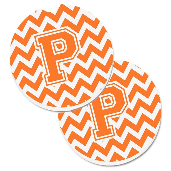 Letter P Chevron Orange and White Cup Holder Car Coaster, PK2