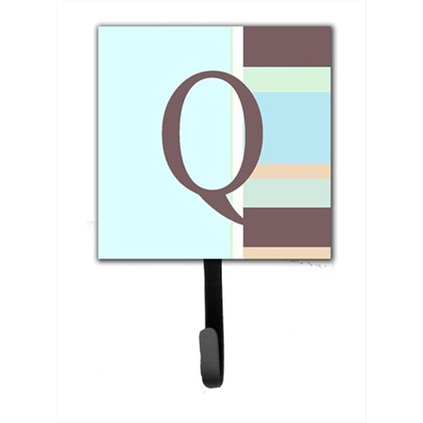 Letter Q Initial Monogram - Blue Stripes Leash Holder Or Key Hook