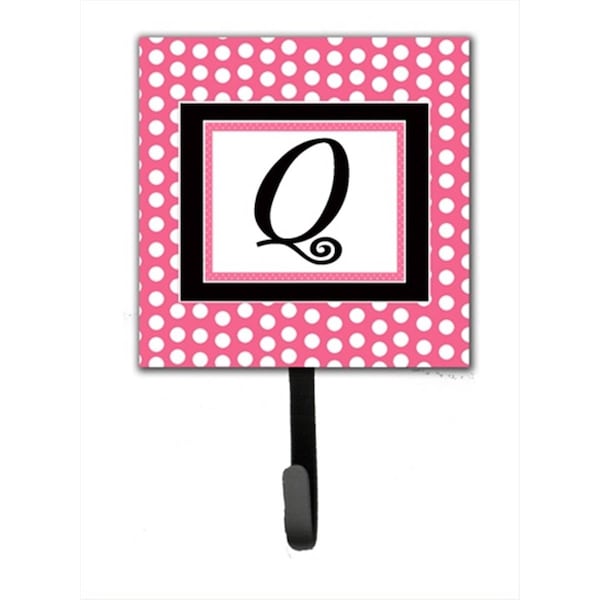 Letter Q Initial Monogram - Pink Black Polka Dots Leash Holder Or Key Hook