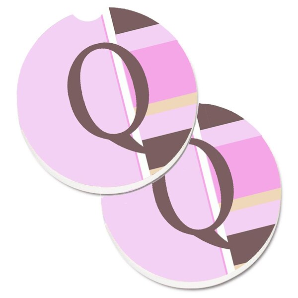 Letter Q Initial Monogram Pink Stripes Cup Holder Car Coaster, 2PK