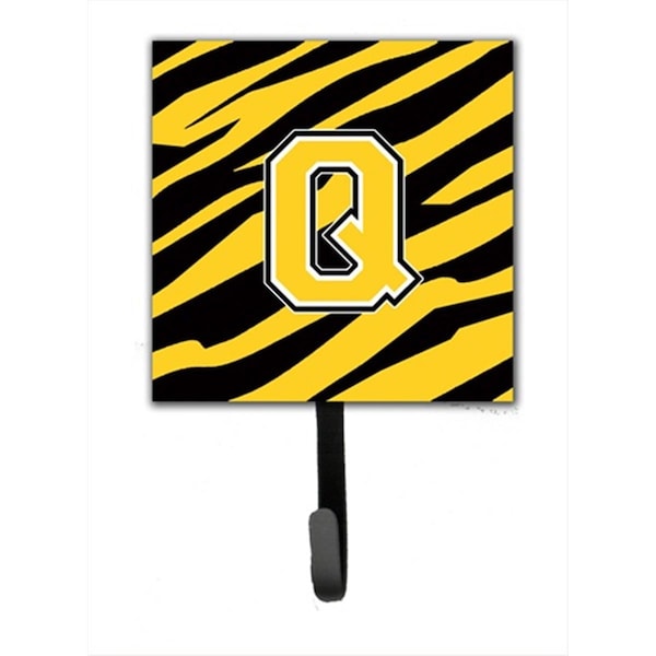 Letter Q Initial Monogram - Tiger Stripe - Black Gold Leash Holder Or Key Hook