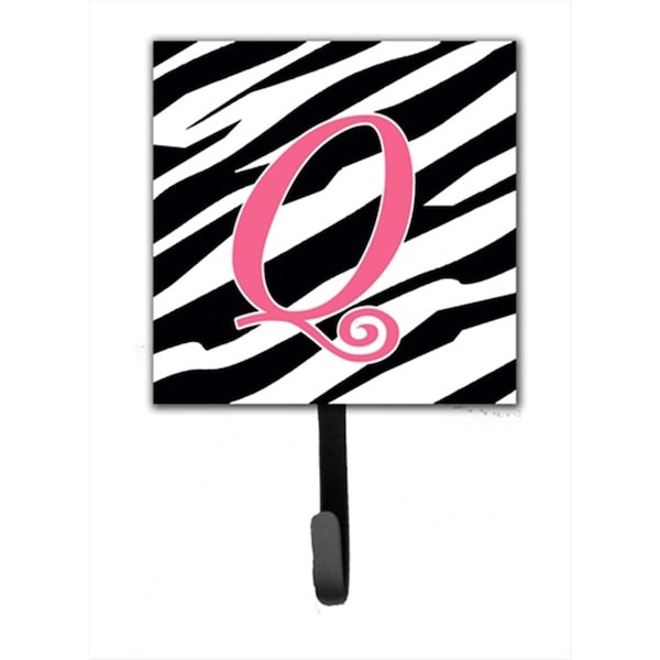 Letter Q Initial Monogram - Zebra Stripe And Pink Leash Holder Or Key Hook