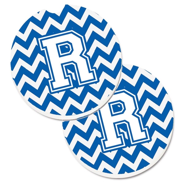 Letter R Chevron Blue and White Cup Holder Car Coaster, PK2