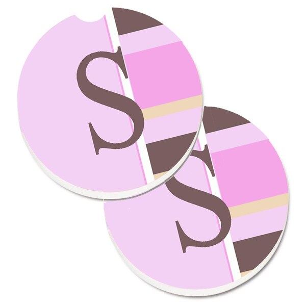 Letter S Initial Monogram Pink Stripes Cup Holder Car Coaster, 2PK