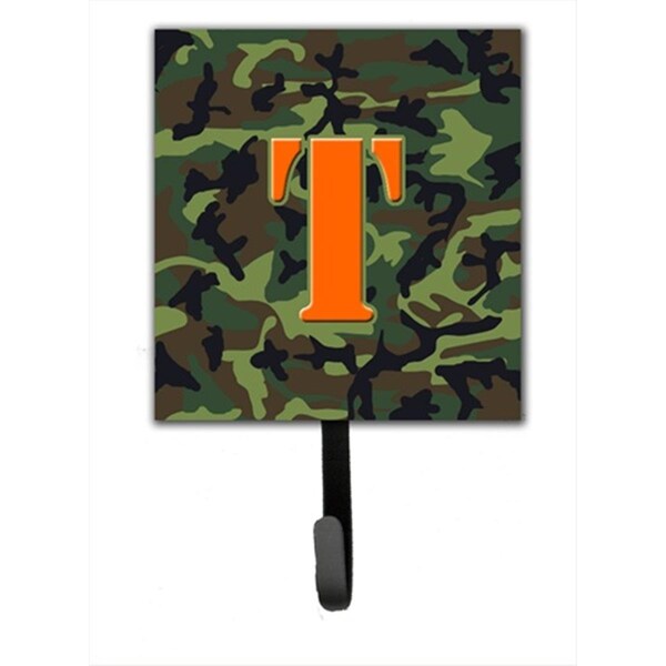 Letter T Initial Monogram - Camo Green Leash Holder Or Key Hook
