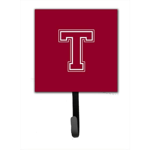 Letter T Initial Monogram - Maroon And White Leash Holder Or Key Hook