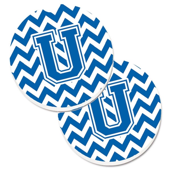 Letter U Chevron Blue and White Cup Holder Car Coaster, PK2