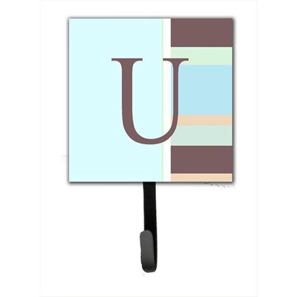 Letter U Initial Monogram - Blue Stripes Leash Holder Or Key Hook