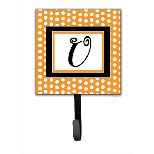 Letter U Initial Monogram - Orange Polka Dots Leash Holder Or Key Hook