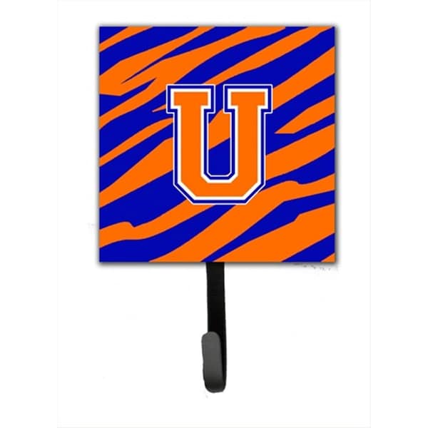 Letter U Initial Monogram - Tiger Stripe - Blue Orange Leash Holder Or Key Hook