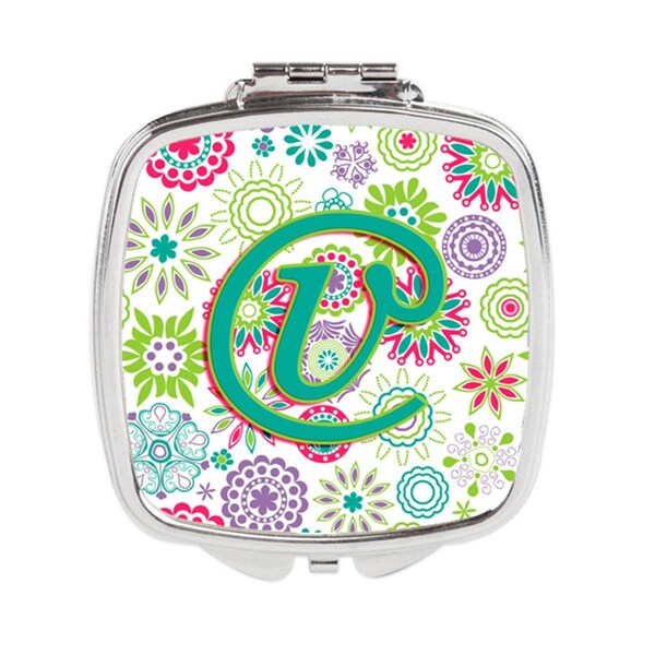 Letter V Flowers Pink Teal Green Initial Compact Mirror (Discontinued)