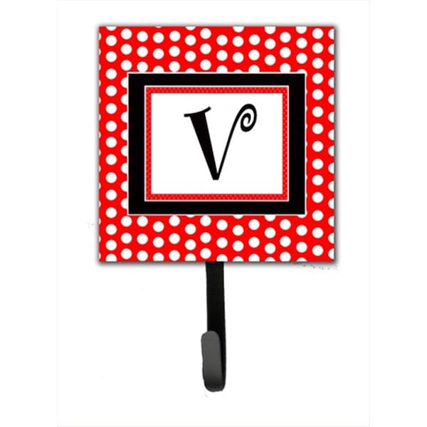 Letter V Initial Monogram - Red Black Polka Dots Leash Holder Or Key Hook