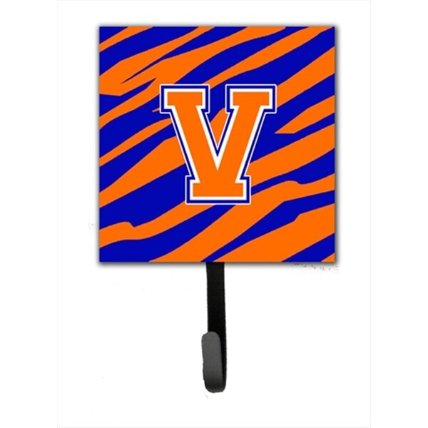 Letter V Initial Monogram - Tiger Stripe - Blue Orange Leash Holder Or Key Hook