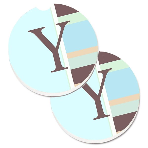 Letter Y Initial Monogram Blue Stripes Cup Holder Car Coaster, 2PK