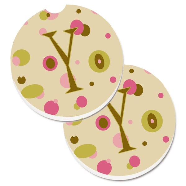 Letter Y Initial Monogram Tan Dots Set of 2 Cup Holder Car Coaster