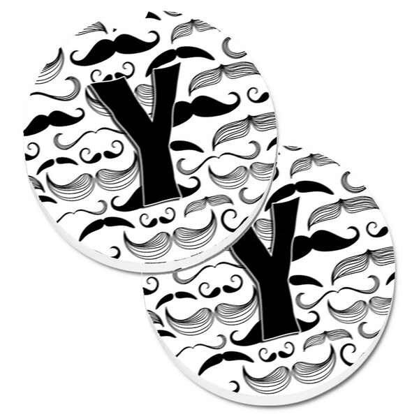 Letter Y Moustache Initial Set of 2 Cup Holder Car Coaster