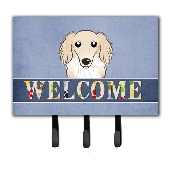 Longhair Creme Dachshund Welcome Leash and Key Holder